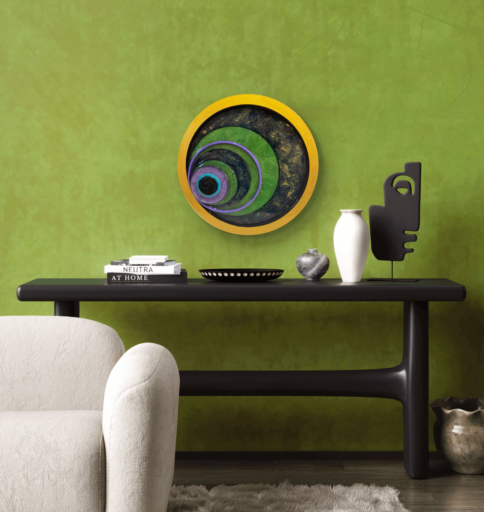 The 12" Signature art piece is a stunning blend of tradition and modern artistry, that features an offset design that reimagines the classic talisman, creating a bold and contemporary statement. Its 12" size makes it versatile enough to shine as a standalone feature or complement a curated art collection.
